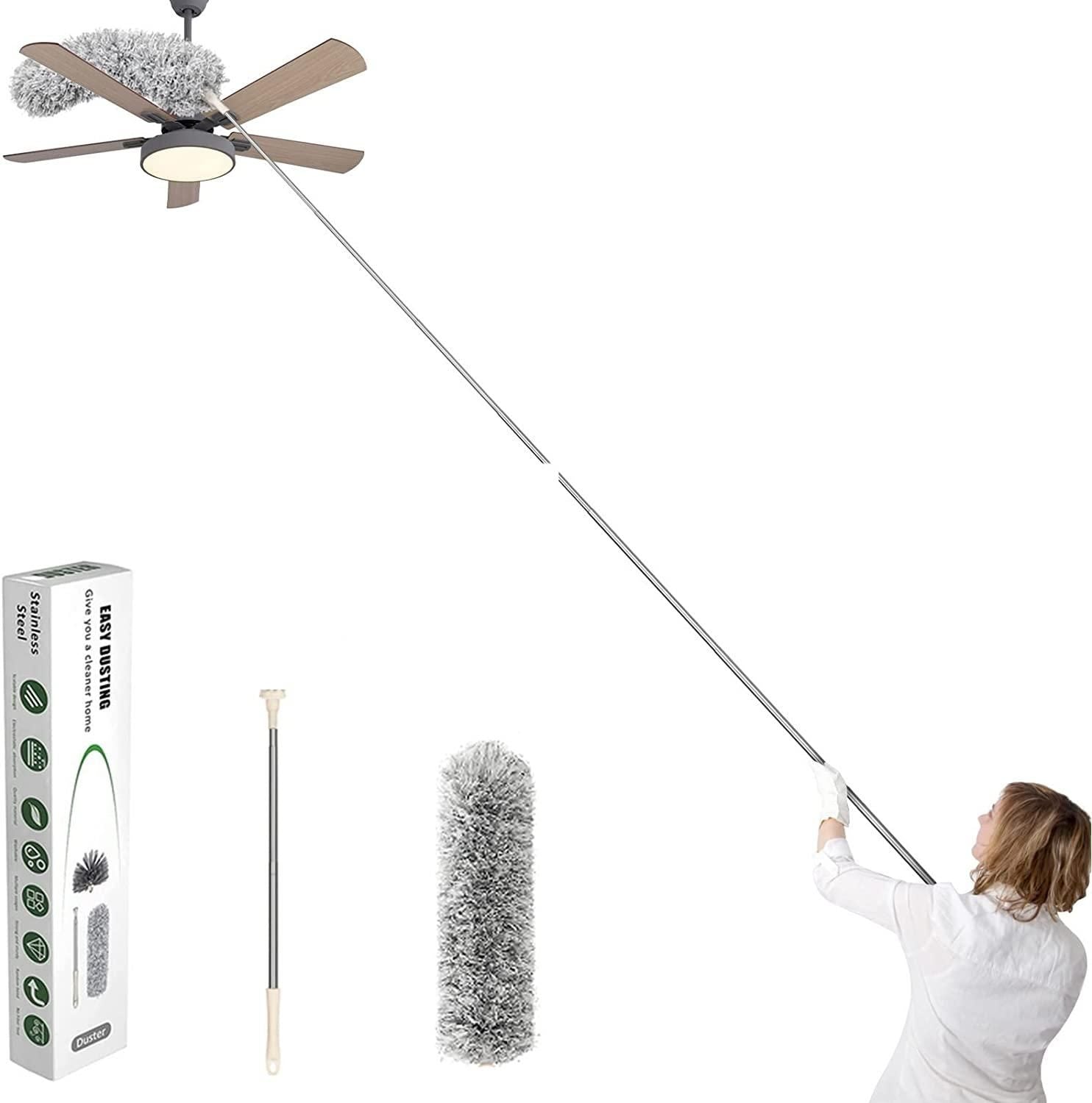 Microfiber Duster for Cleaning Telescopic Extension Long Pole Bendable Head, Scratch-Resistant Cover